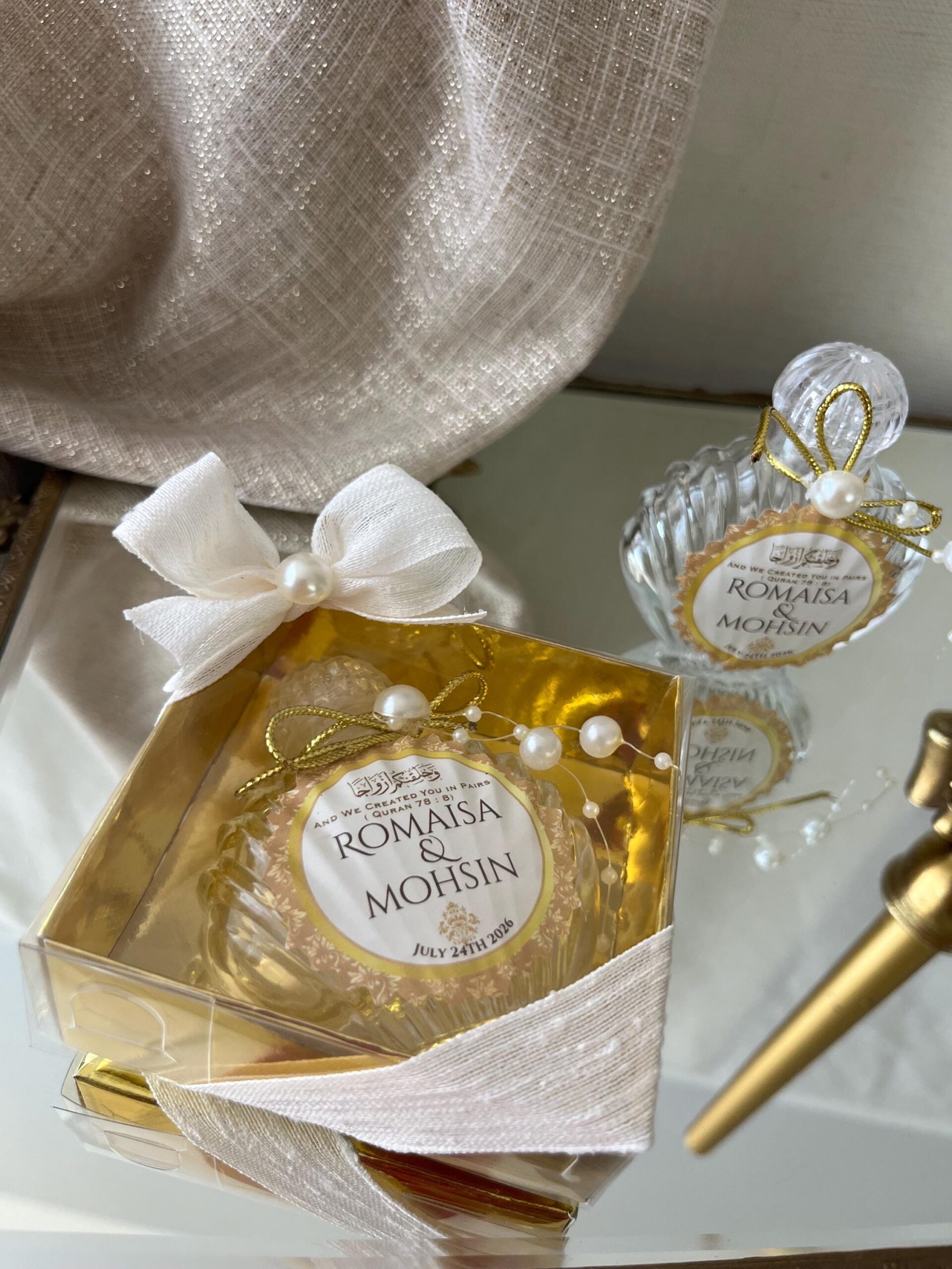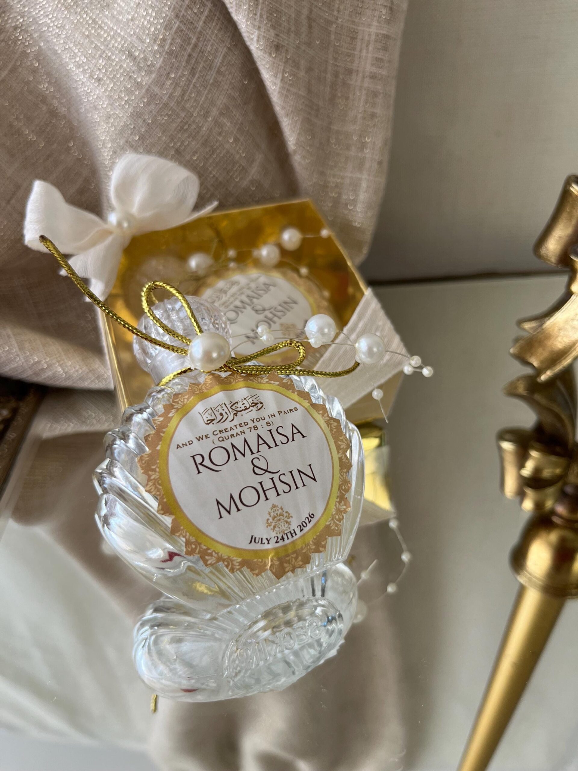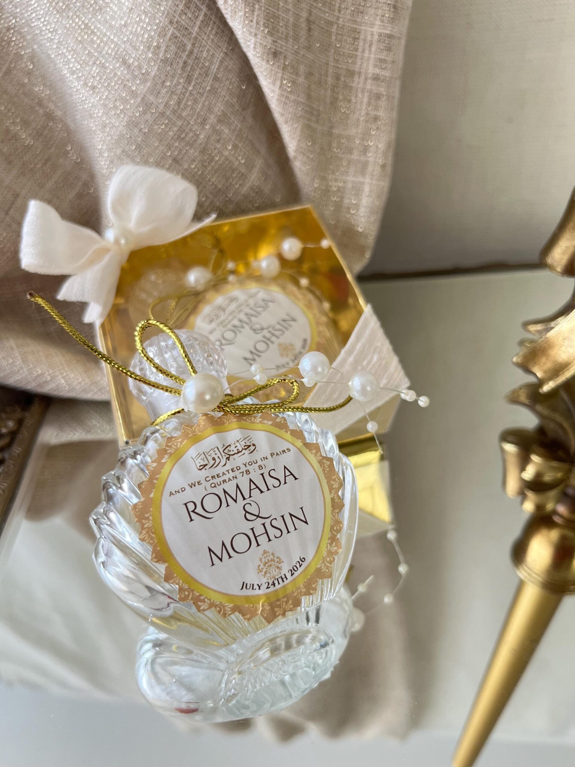 Custom tag is redesigned for your occasion (Nikkah, baby shower, engagement, Eid, etc.) — guests keep and reuse them.